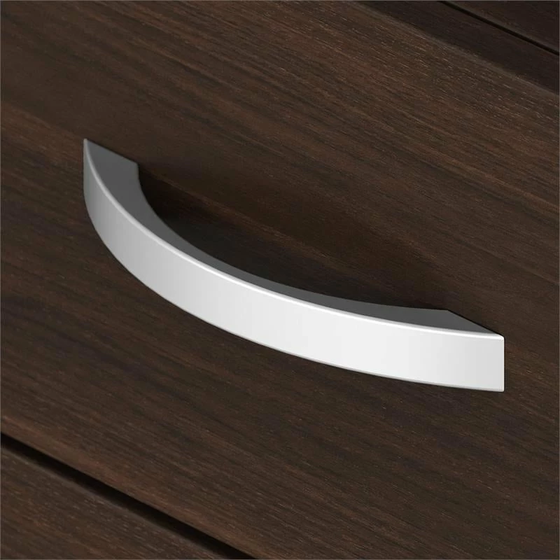 The Bush Business Furniture Hybrid 3 Drawer Mobile File Cabinet offers a stylish, long-lasting storage solution for the modern professional. Enjoy a neat and organized workspace with a filing cabinet that conveniently rolls wherever you need access to important documents and supplies. The file drawer opens on smooth full-extension ball bearing slides for an effortless reach to letter, legal and A4-size paperwork while a pair of box drawers organize writing utensils, notepads and more. The two bottom drawers can be secured by a single lock to protect sensitive files or personal items. The rolling file cabinet’s compact design allows it to fit underneath a standard size office desk for a space-saving configuration. Find the perfect look for your space with five contemporary finish options: Black Walnut, Modern Hickory, Platinum Gray, Storm Gray and White. This 3 drawer file cabinet with wheels has been meticulously tested to meet or exceed ANSI/BIFMA quality standards for safety, durability and performance and is backed by the Bush Business Furniture 10 Year Manufacturer’s Warranty. See the full Hybrid Collection for coordinating items to enhance your workspace as needed, including Computer Desks, Bookcases and Storage Cabinets (coordinating items sold separately). Materials: Engineered wood and Laminates.