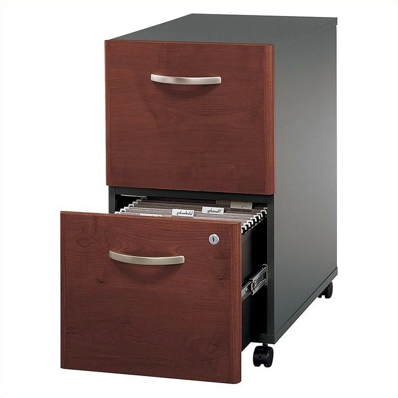 Enjoy mobile storage that works wherever you do. The Bush Business Furniture Series C 2 Drawer Mobile File Cabinet rolls smoothly on dual-wheeled, hooded casters for years of easy, everyday use. Slide the Cabinet under a coordinating Series C Desk to save space or move it around the office as needed. A single lock secures both drawers to protect your letter, legal and A4 files. Drawers glide on smooth, full-extension ball bearing slides for an effortless reach to the back, and Brushed Nickel hardware makes a lasting impression. Series C offers endless layout options, expansion opportunities and 7 finishes. This affordable office furniture withstands the rigors of a 40-plus hour work week and comes with a 10 Year Warranty. American made with U.S. and imported parts. Material: Engineered Wood and Laminates.