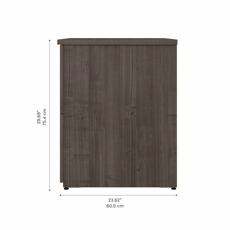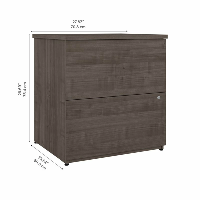The Bestar Logan 2 drawer lateral file cabinet is a great paperwork storage solution for any office. It allows you to keep your numerous files, documents, and office supplies organized. The large filing cabinet is designed with our Tip Guard™ safety features, which include a stable design, a counterweighted back panel, a wall anchor, and open-safe drawers. Thanks to the fully finished back panel, you can place the lateral file cabinet anywhere in your office. Use the durable melamine surface as a convenient storage spot for your printer. Each drawer opens on smooth full-extension ball-bearing slides, so you’ll have no trouble reaching its contents. The drawers are designed to accommodate files of various sizes for your convenience. A lock secures both drawers to protect sensitive information. Add a touch of style and personality to your office by displaying decorative items, plants, and pictures on top of the office cabinet. The lateral filing cabinet’s classic design allows it to blend seamlessly into your existing office decor style. This storage solution is tested to meet ANSI/BIFMA quality standards for safety and performance. This 2 drawer lateral file cabinet is backed by the Bestar 2 year manufacturer’s warranty. See the full Logan collection to create the perfect office space with a desk, bookcase, and more (coordinating items sold separately).