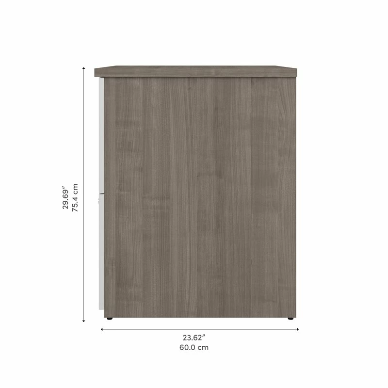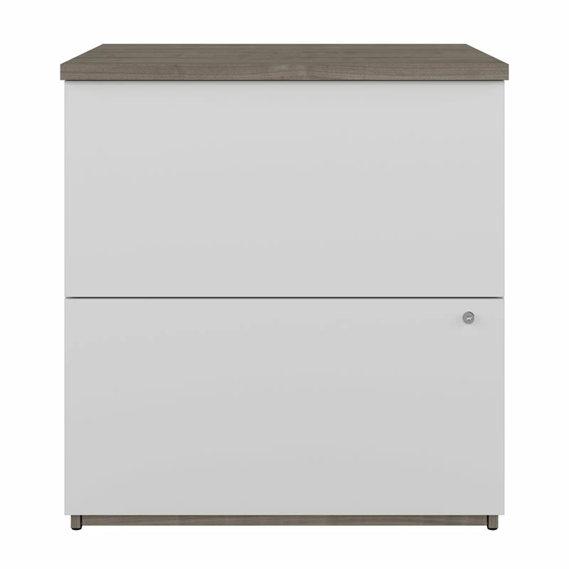 The Bestar Ridgeley 2 drawer lateral file cabinet is the perfect paperwork storage solution for any office. This file cabinet allows you to keep your various files, documents, and office supplies organized and in order. The large file cabinet is designed with our Tip Guard™ safety features, which include a stable design, a counterweighted back panel, a wall anchor, and open-safe drawers. Thanks to its fully finished back panel, the lateral filing cabinet can be placed anywhere in your office. Use the durable melamine surface as an additional storage spot for a printer. Each drawer opens on smooth full-extension ball-bearing slides for an effortless open and close. The drawers are designed to accommodate files of various sizes for your convenience. A lock secures both drawers to protect sensitive information. Add some style and personality to your office by displaying decorative items, plants, and pictures on top of the cabinet. The lateral filing cabinet’s classic design allows it to blend easily into any existing office decor style. This storage solution is tested to meet ANSI/BIFMA quality standards for safety and performance. This 2 drawer lateral file cabinet is backed by the Bestar 2 year manufacturer’s warranty. See the full Ridgeley collection to create your ideal office space with a desk, bookcase, and more (coordinating items sold separately).