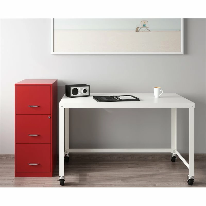 The 3 Drawer Metal File Cabinet is the perfect design for small office or home office use. This file cabinet is a smart, efficient design for smaller spaces. This cabinet features three high-side drawers which accommodate letter-size hanging files. The drawers can also be the perfect storage solution for other office essentials. Each drawer features a patented glide suspension for a smooth open and close motion and a three-quarter drawer extension to help you locate your files easier. In addition, you can keep your files and possessions secure by using the built-in lock for both drawers. Painted steel surface is non-porous and easy to clean and disinfect. Bring organization and function to your home or office with this stylish three-drawer file cabinet. Your supplies and files will always be organized and within reach!