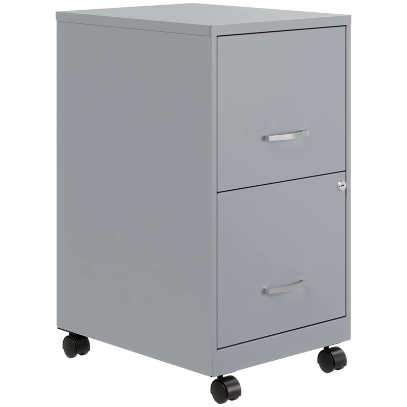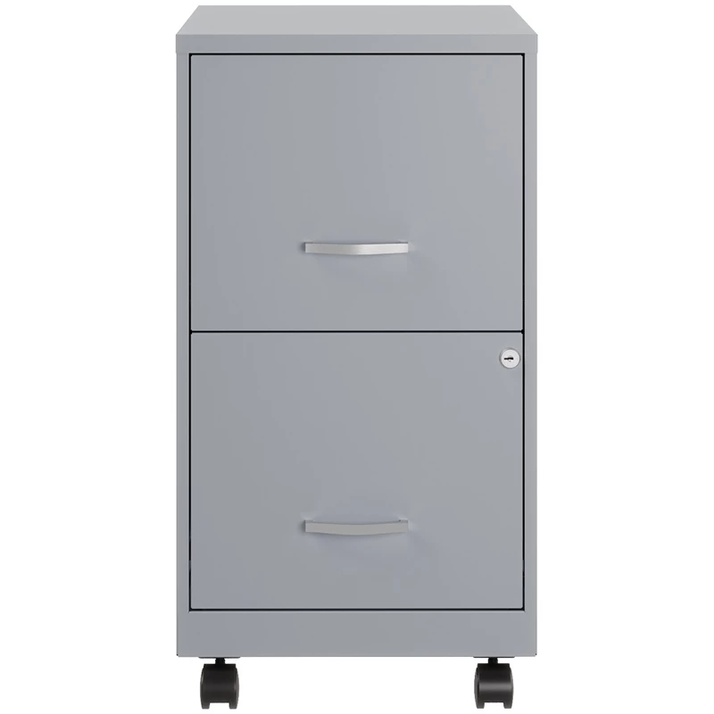 The Mobile 2-Drawer Metal File Cabinet in Platinum/Gray is designed for small office or home office use. The cabinet features a smart, efficient design that works well in small spaces and fits under most work surfaces or desks. Each drawer features high-sides to accommodate letter-sized hanging files. The drawers are also a perfect storage solution for other office essentials. Using a patented glide suspension, the drawers have a smooth open and close slide with a three-quarter drawer extension to prevent tipping. In addition, you can keep your files and possessions secure by using the built-in lock for both drawers. The additional wheels that come with this file cabinet are both stylish and functional which makes it easy to move around your home or office. Painted steel surface is non-porous and easy to clean and disinfect. Bring organization and function to your home or office with this stylish mobile two-drawer file cabinet. Your supplies and files will always be organized and within reach!