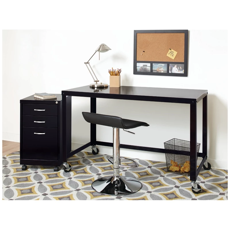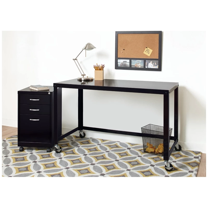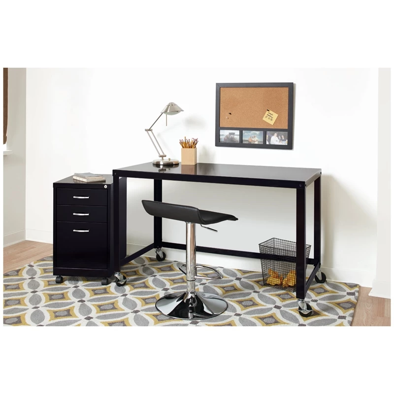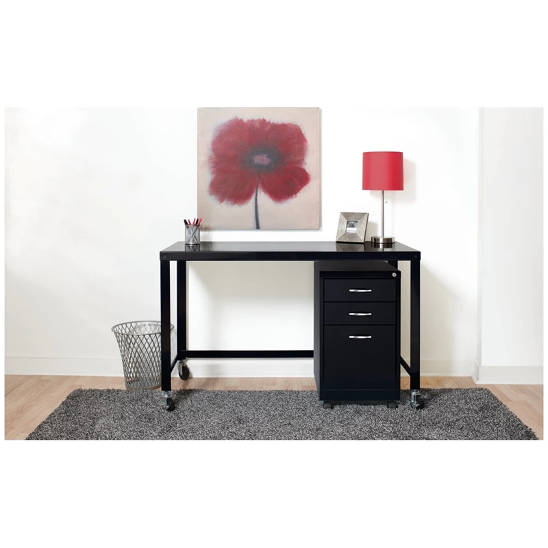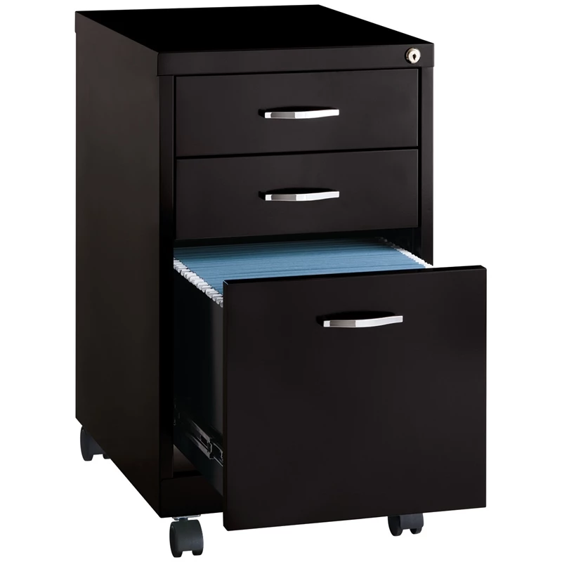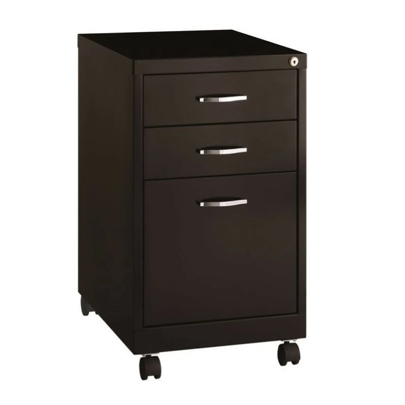 Designed for durability and security, the Office Dimensions SOHO Metal Pedestal in black provides the perfect storage solution for a small office or home office. The simple, contemporary exterior allows this cabinet to fit in any office environment while the durable steel is easy to clean and disinfect. This steel file cabinet a versatile storage solution for your home office needs. The file cabinet features a smart, efficient design that works well in smaller spaces, and fits under most work surfaces or desks. The file drawer features high-sides to accommodate letter sized hanging files. Using a patented glide suspension, the drawers have a smooth open and close slide with a three-quarter drawer extension. In addition, you can keep your files and possessions secure by using the built-in lock for both drawers. Bring organization and function to your home or office with this three-drawer file cabinet!