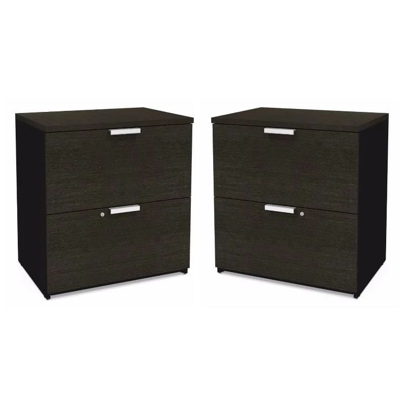 Discount π Home Square 2 Piece Lateral Wooden Filing Cabinet Set In Deep Gray And Black π