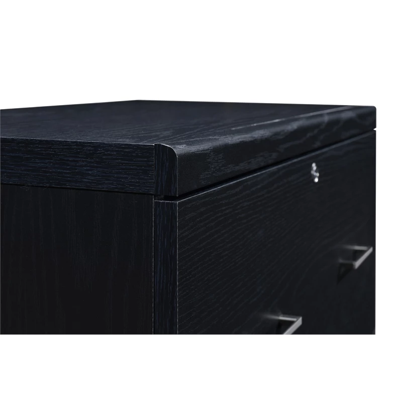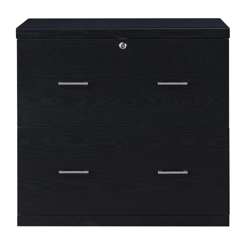 Alpine 2-Drawer Engineered Wood Lateral File with Lockdowel in Black Finish Keep everything organized and secure with our 2-Drawer, locking lateral file cabinet. Dual drawer pulls paired with euro-style easy glide hardware allows each double width drawer to open and close with ease. Both legal and letter size file capability with locking top drawer. Simplify assembly with Lockdowel™ fasteners, which are invisible, creating a tight joint and a finished look. The Lockdowel™ fastening system is designed to simply slide components into place for quick, sturdy assembly every time.