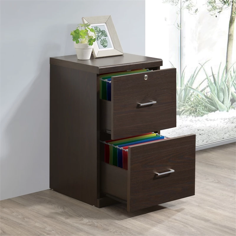 Alpine 2-Drawer Engineered Wood Vertical File with Lockdowel in Espresso Keep everything organized and secure with our 2-Drawer, locking vertical file cabinet. Attractive drawer pulls paired with euro-style easy glide hardware allows each drawer to open and close with ease. Letter size file capability with locking top drawer. Simplify assembly with Lockdowel™ fasteners, which are invisible, creating a tight joint and a finished look. The Lockdowel™ fastening system is designed to simply slide components into place for quick, sturdy assembly every time.