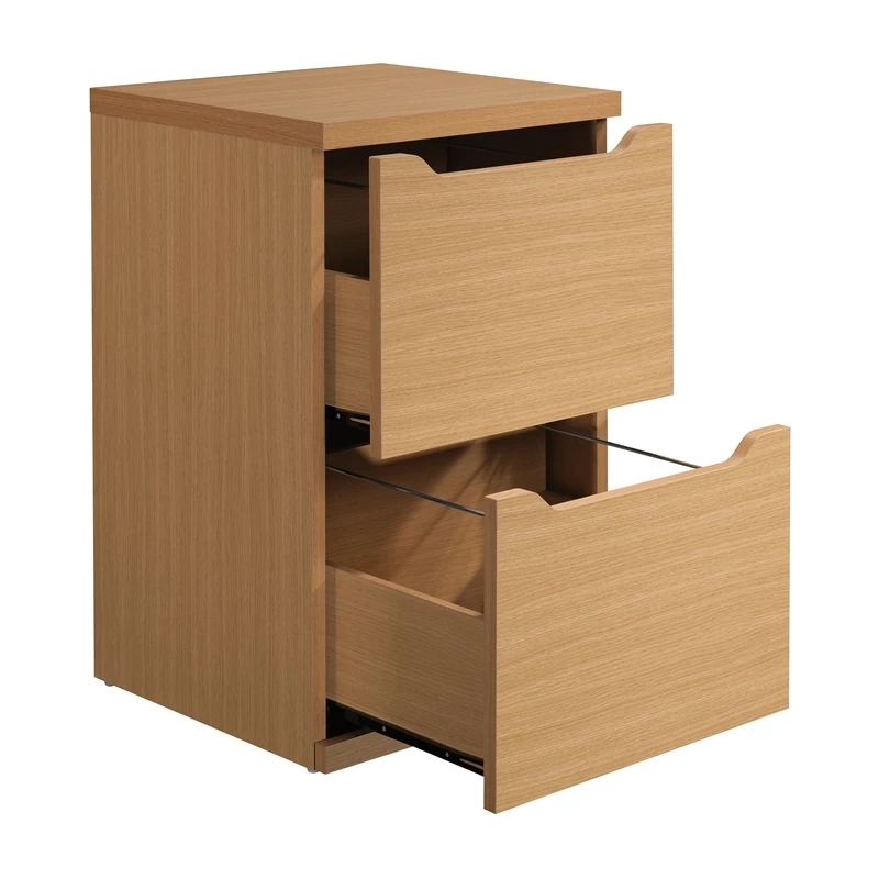 Denmark 2-Drawer Engineered Wood Vertical File with Lockdowel in Natural Finish Keep everything organized and secure with our 2-Drawer, Vertical file cabinet. Integrated drawer pulls paired with euro-style easy glide hardware allows each drawer to open and close with ease. Deep, ample storage drawers provide file capabilities. Enjoy simple assembly with Lockdowel™ fastening system, which is invisible, creating a tight joint and a finished look, designed to simply slide components into place for quick, sturdy assembly every time.