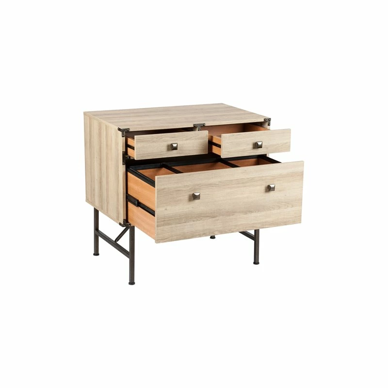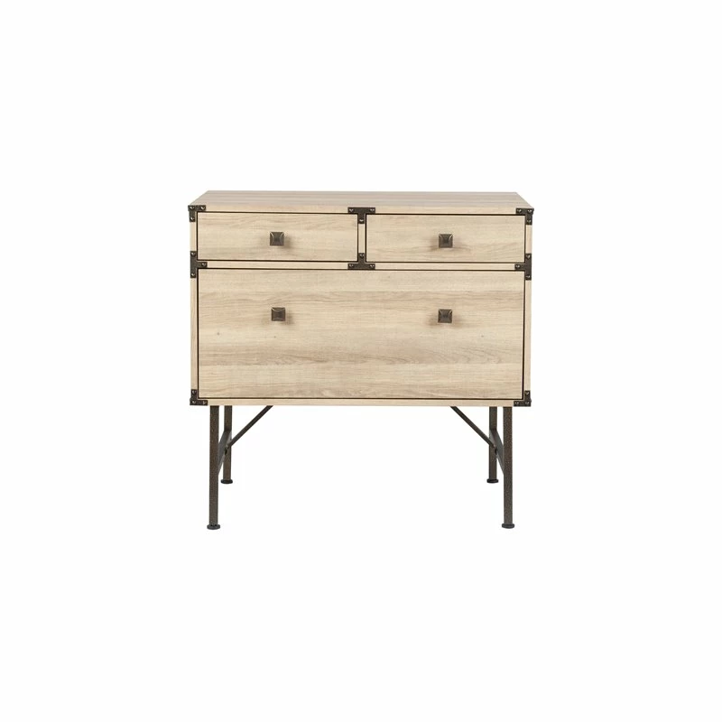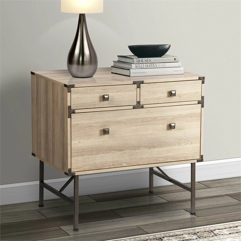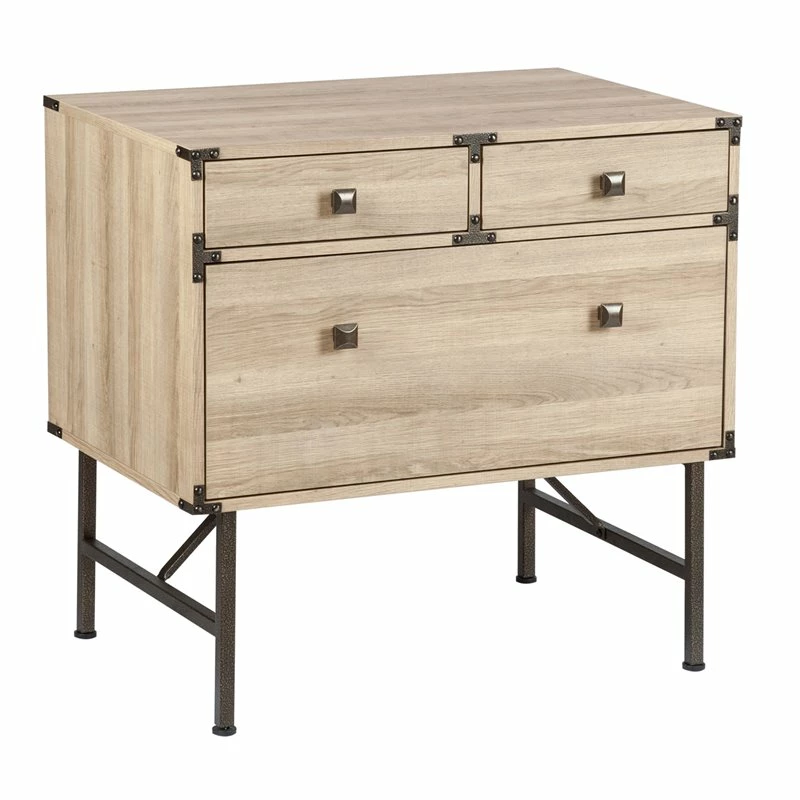 Give any home or office space an attractive, modern update with this lateral file drawer. Sleek metal legs support a light oak finished body for a superior level of strength and durability with an added touch of visual allure. Multiple storage drawers make it easy to keep your space neat and tidy. The generous top surface is perfect for displaying photos and other decorative items.