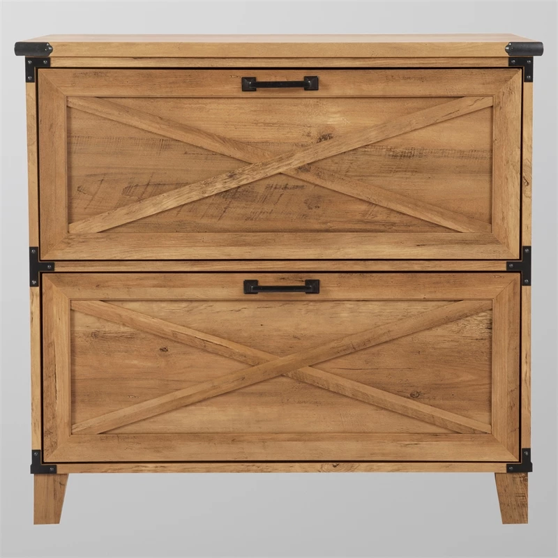File away your important papers and documents in this beautiful rustic file cabinet. It blends in so well within a casually stylish setting, no one will guess that it’s diligently functioning as an efficient organizational tool within your office, bedroom, or wherever you do your work at home. Visually appealing accents like black steel hardware and X-cross detailing on the cabinet fronts keep the industrial vibe strong. The cabinet includes a file hanging bar for convenience.