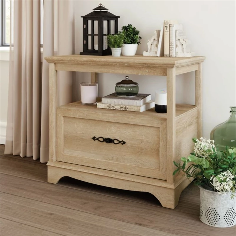 The question isn’t whether you need a file cabinet—the question is which one do you pick? This lateral file cabinet combines all the essentials of a perfect filing cabinet with the eclectic coffee house design of the Adaline Café™ collection. This single drawer lateral file cabinet features a spacious drawer with full extension slides that holds letter or legal-size hanging files. Your most important documents are never far out of reach and are organized and easy to find. An open shelf below the top surface of this wood lateral file cabinet is the perfect place for books, binders, or other home office essentials. The spacious top surface allows you to display photos of your family, a lamp, home décor and more. Finished on all sides for versatile placement in any room of your home, this file cabinet with drawer will look great no matter how you arrange it. Finished in a universal Orchard Oak™, this legal-size file cabinet makes storing your files easier than ever, and it looks good doing it.