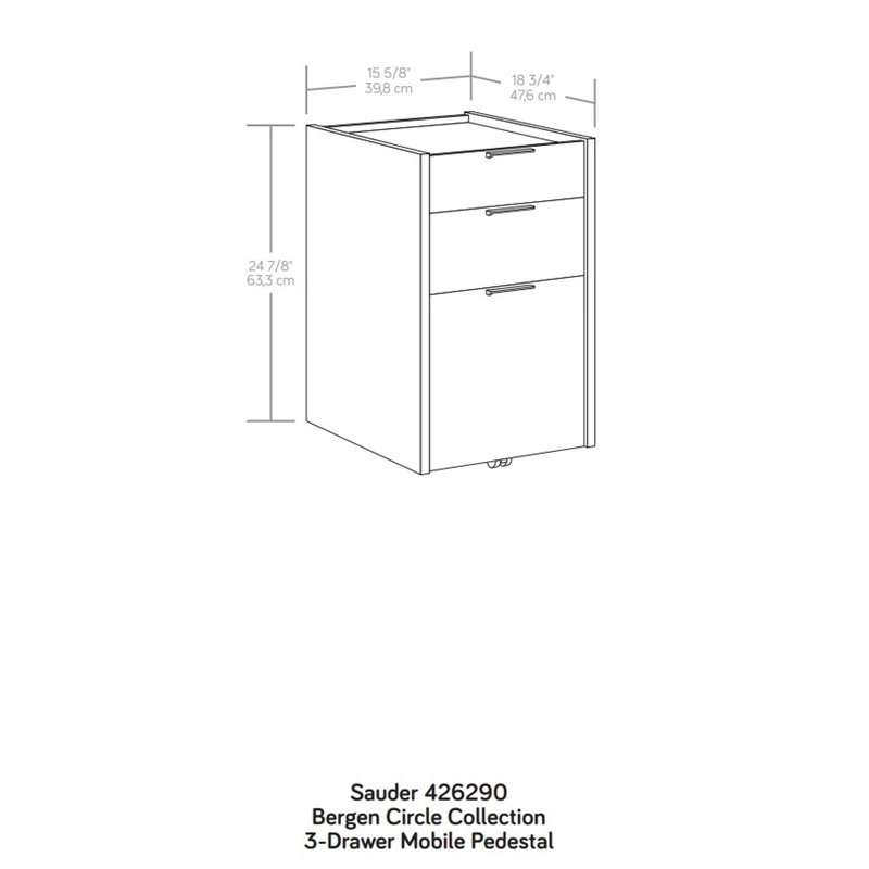 For office storage and file space in one, look no further than this mobile pedestal file cabinet from the Bergen Circle™ collection. This 3-drawer filing cabinet comes fully assembled, with minimal hardware attachment required, so you can finish your office set-up and begin using your commercial filing cabinets quickly and easily. Two small drawers with full extension slides are ideal for storing office essentials like pens, extra paper, sticky notes, and your planner. A lower drawer with full extension slides holds letter or legal-size hanging files, keeping your most important documents organized. This pedestal filing cabinet features an inset gallery top surface, making it easy to place your expense reports, office essentials, or display decorative elements. For use as a mobile file cabinet, it includes hidden casters for easy movement around the office, so you can rearrange when necessary. This file pedestal is finished on all sides for versatile placement at the office—it will look polished from every angle. Finished in Kiln Acacia®, this modern filing cabinet complements and completes any office space.