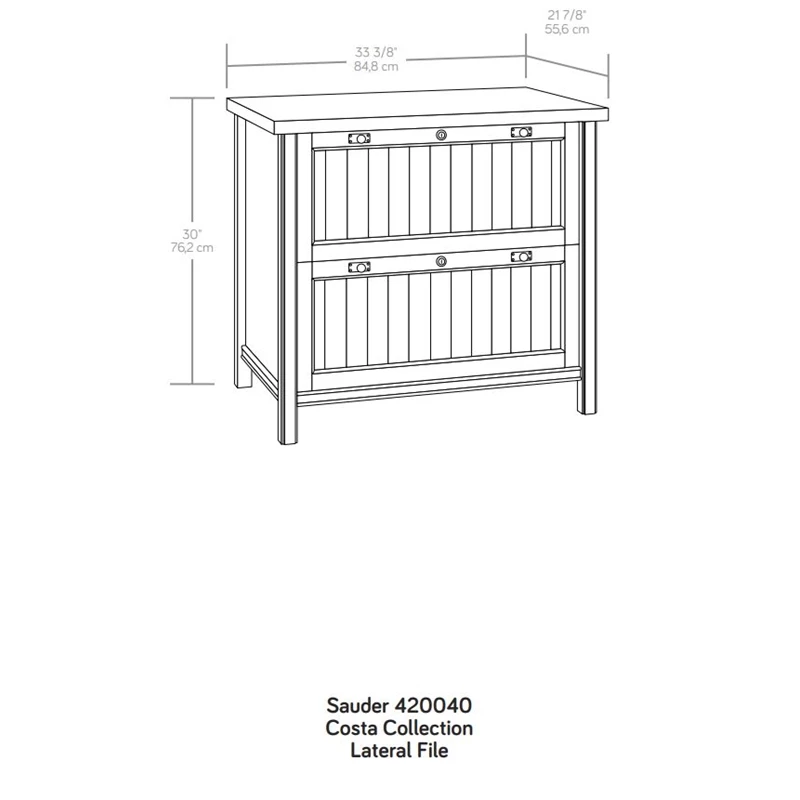 Where do you keep your important files? Stuffed in a drawer? Expand your office storage and enhance your décor with this lateral file from the Costa collection. Blending style and function together, upgrade your décor and the place you store your papers to this 2 drawer lateral file cabinet. This lateral file cabinet features full extension slides and holds letter or legal-size hanging files. A durable, 1” thick top of this wood lateral file cabinet is the perfect place for books, home décor and more. Your safety is always on our mind and this 2 drawer file cabinet includes a patented, interlocking safety mechanism that allows only one drawer open at a time. Additionally, both drawers include a lock for secure storage of your documents. Finished in Chalked Chestnut® and detailed with a stylish, framed, slat-front, this cottage inspired, legal size lateral file cabinet will look stunning no matter where it stands.