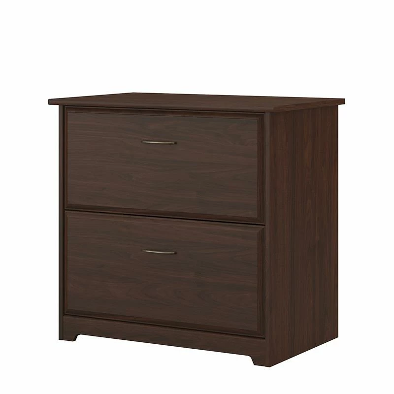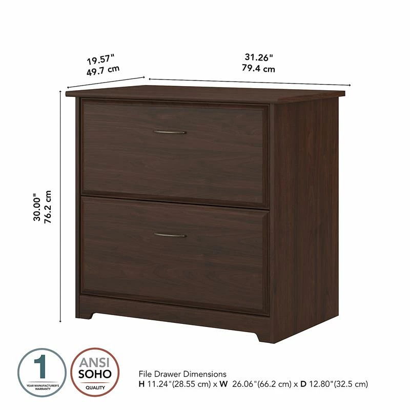 The Scranton & Co Furniture Cabot 2 Drawer Lateral File Cabinet is a great way to keep important documents organized and accessible in your home office. Featuring a timeless traditional style, this filing cabinet includes two spacious drawers that accept legal, letter and A4-size paperwork. Both drawers open on smooth full-extension ball bearing slides for an easy reach to contents all the way at the back. The 2 Drawer File Cabinet can also be used with the coordinating Cabot Corner Desk or L Shaped Desk (sold separately) to create an extended work surface when placed side by side. Each drawer is fitted with stylish handles that complement your choice of several attractive finishes to complete the simple, elegant appearance. This 2 drawer lateral filing cabinet is tested to meet ANSI/SOHO standards for safety and performance and is backed by the Scranton & Co Furniture 1 Year Manufacturer’s Warranty.