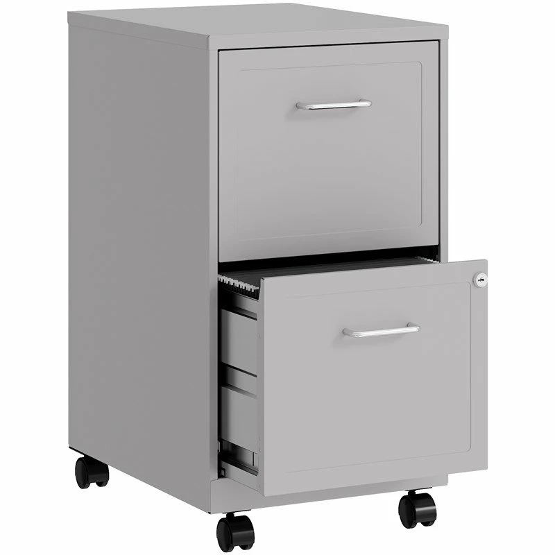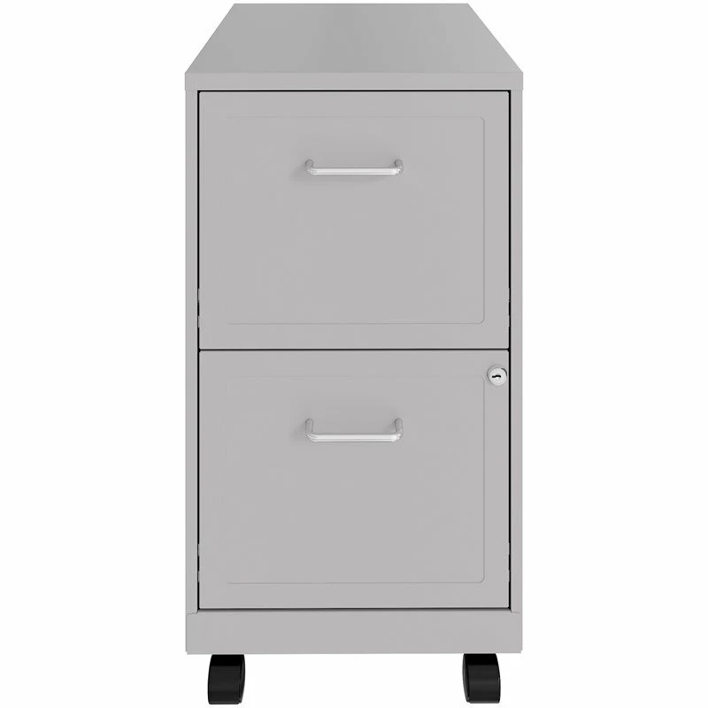 Keep important documents secure and organized with this Scranton & Co file cabinet. This compact cabinet fits under most desks to conserve valuable office space. It features two roomy drawers that can accommodate letter-size files. A single lock secures both drawers with the included keys and three-quarter extension prevents drawers from falling out. Equipped with easy-roll casters, this mobile filing cabinet can be comfortably moved as needed. The silver color and stylish embossed drawer fronts are a neutral and attractive addition to any home or office. This Scranton & Modern Metal Gray Co Mobile 2 Drawer File Cabinet will be a undoubtedly a great addition to your home décor. Add a touch of elegance to your home setting. The modern design showcases for a timeless aesthetic that goes with a wide range of decor themes. It has a simplicity and a flare all at once, as if inspired by the simple gown that is confident in taking up its space.