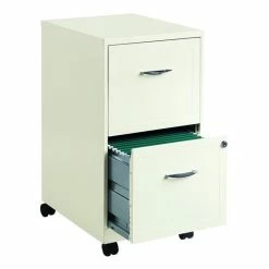The 2-Drawer Metal File Cabinet is designed for small office or home office use. The cabinet features a smart, efficient design that works well in small spaces and fits under most work surfaces or desks. Each drawer features high-sides to accommodate letter-sized hanging files. The drawers are also a perfect storage solution for other office essentials. Using a patented glide suspension, the drawers have a smooth open and close slide with a three-quarter drawer extension to prevent tipping. In addition, you can keep your files and possessions secure by using the built-in lock for both drawers. The additional wheels that come with this file cabinet are both stylish and functional which makes it easy to move around your home or office. Painted steel surface is non-porous and easy to clean and sanitize. Bring organization and function to your home or office with this stylish mobile two-drawer file cabinet. Your supplies and files will always be organized and within reach! This Scranton & Contemporary Metal Co 2 Drawer Steel File Cabinet in White will be a undoubtedly a great addition to your home décor. Add a touch of elegance to your home setting. The modern design showcases for a timeless aesthetic that goes with a wide range of decor themes. It has a simplicity and a flare all at once, as if inspired by the simple gown that is confident in taking up its space.