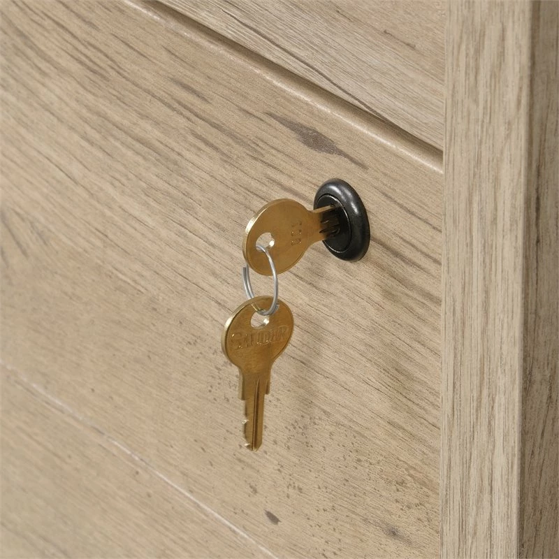 Your papers deserve more than being shoved in a drawer only to be forgotten about or disappear when you need them most. The UrbanPro lateral file cabinet can make sure you never go scrambling for that missing document ever again. With drawers that fully extend and hold letter, legal or European size hanging files, all your important documents are readily available at your fingertips. Your files will be secure with the drawer key locks on this wood lateral file cabinet. Safety is on our minds and the patented interlocking safety mechanism of this 2 drawer lateral file cabinet allows only one drawer to open at a time. Your time is precious. That’s why this legal size file cabinet can quick and easily be assembled with a patented T-lock drawer system. It’s durable 1” thick top allows you to display photos or memories of what really matters, your family and friends. Finished in a universal Prime Oak, this 2 drawer file cabinet is ready to help you organize your electronics manuals, vital documents and treasured files.