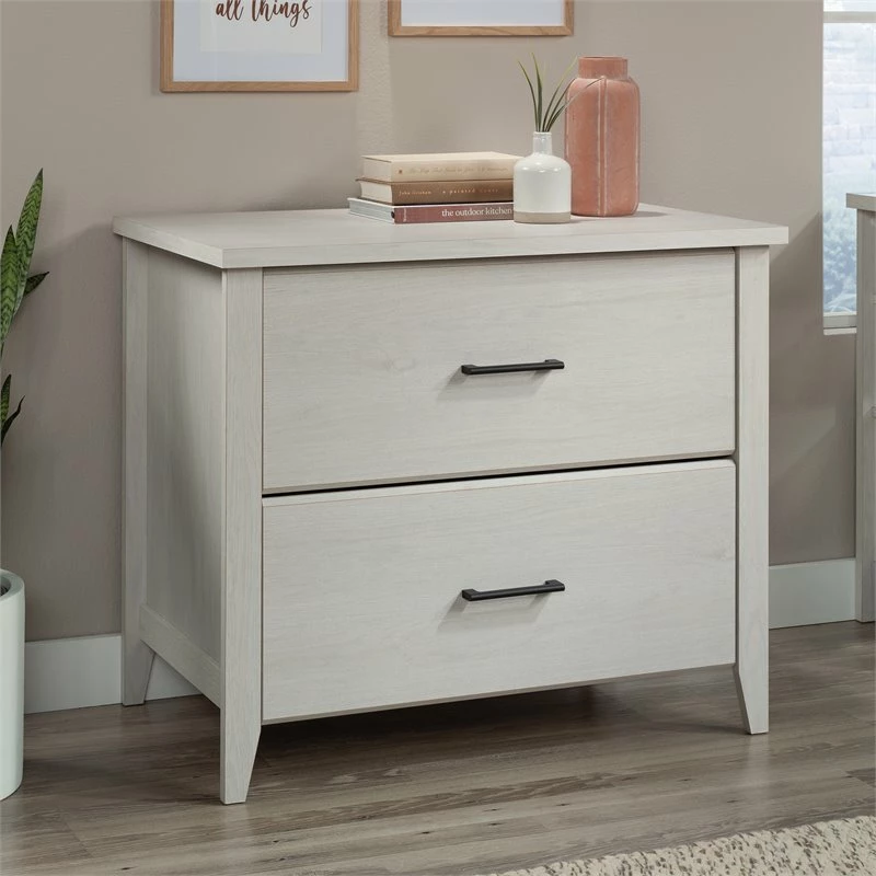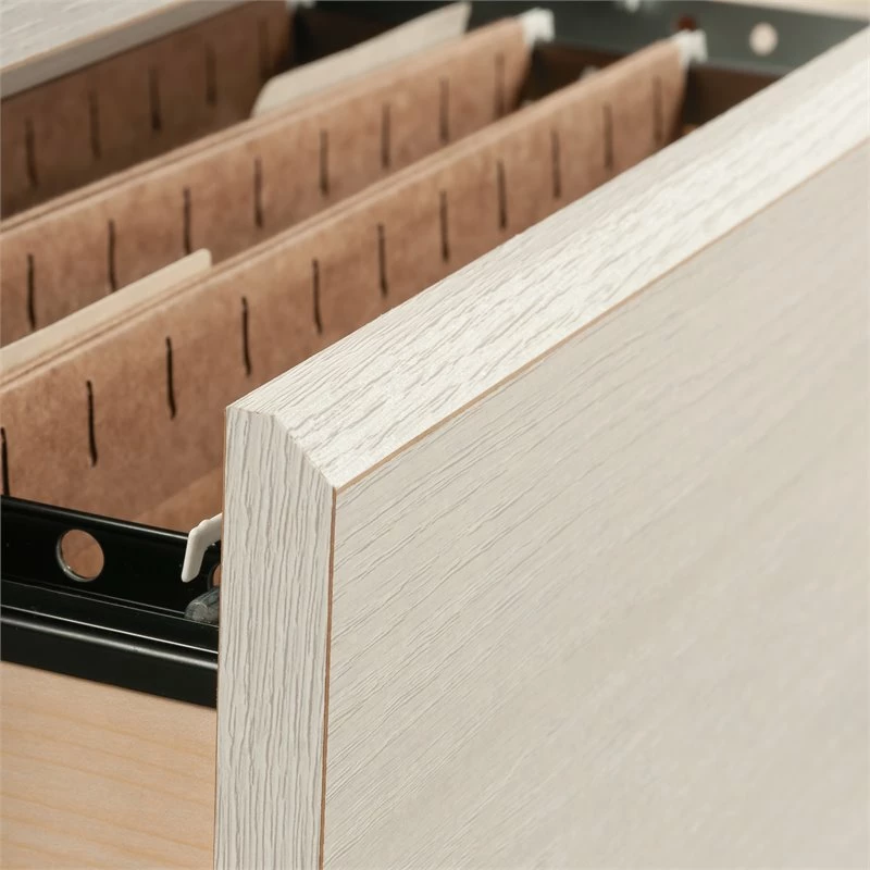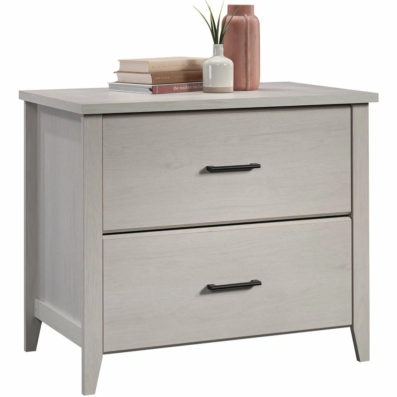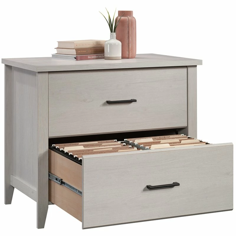 Keep your most important documents organized and easy to find with this 2-drawer lateral file cabinet from UrbanPro. This lateral filing cabinet features strong and lightweight panel construction, meaning it is easy to assemble and light enough to be easily rearranged to any room of your home. The drawers of this 2-drawer filing cabinet include full extension slides and hold letter, legal, or European size hanging files. For your safety, this legal-size filing cabinet features an interlocking safety mechanism that allows only one drawer open at a time, preventing tip over accidents. Let’s not forget about the details—this lateral file cabinet includes elegant, tapered feet and chamfered edges for that added stylish touch. The top surface is ideal for home décor items, your printer, a lamp, and more. Finished in Glacier Oak, your office will be stylish, and organized, in no time.
