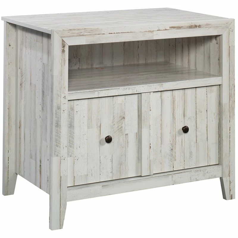 Are the stacks of paper and folders on your desk becoming unbearable? Free up your workspace and get organized with this 1-drawer lateral file from UrbanPro. This open shelf lateral file features a large drawer with full extension slides that can hold letter, legal, or European sized hanging files to keep important documents organized. The open area above the drawer creates flexible storage for items of all shapes and sizes. Plus, this shelf provides easy-access storage for office items like binders and folders. This lateral file cabinet features a spacious top surface that provides additional storage and a place to display home décor items like decorative plants and framed photos. This lateral file with storage is finished on all sides so it will look polished from every angle. Assembly is quick and easy with a slide-on molding and a T-lock drawer system. Finished in White Plank, this small lateral file will have your office space feeling organized in no time.