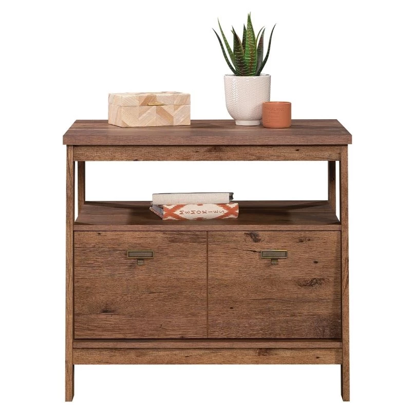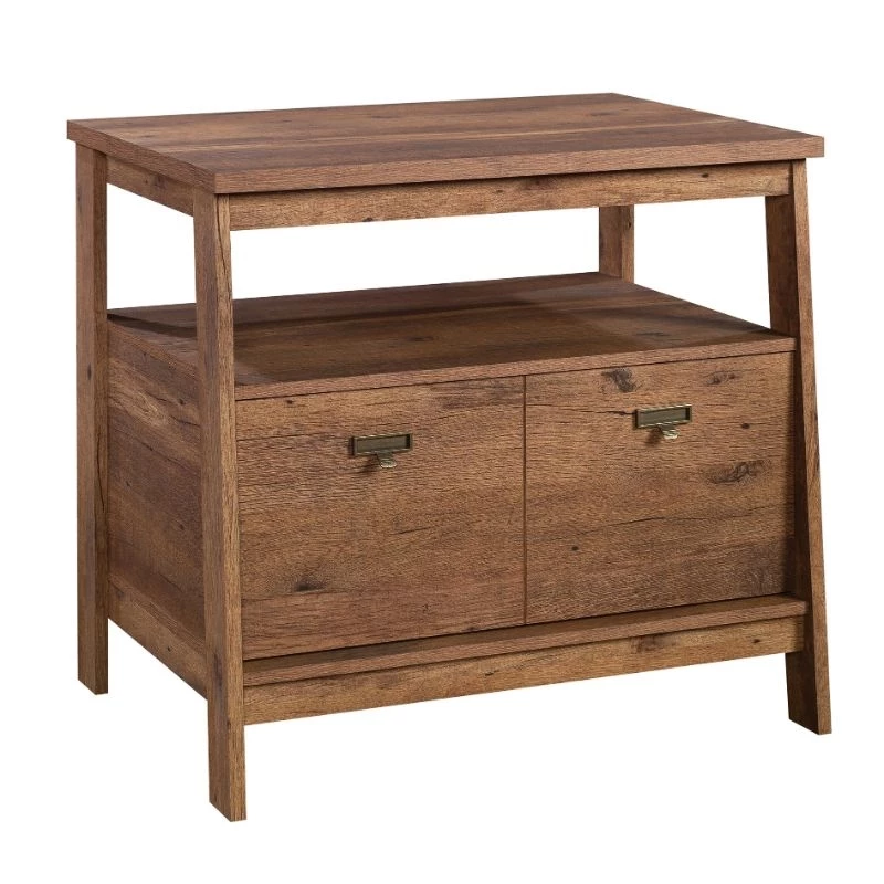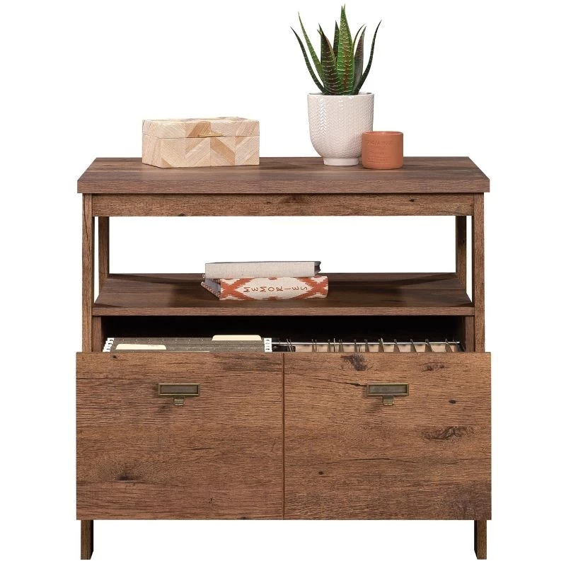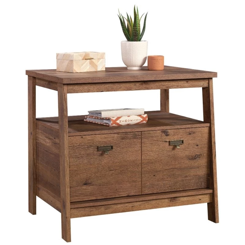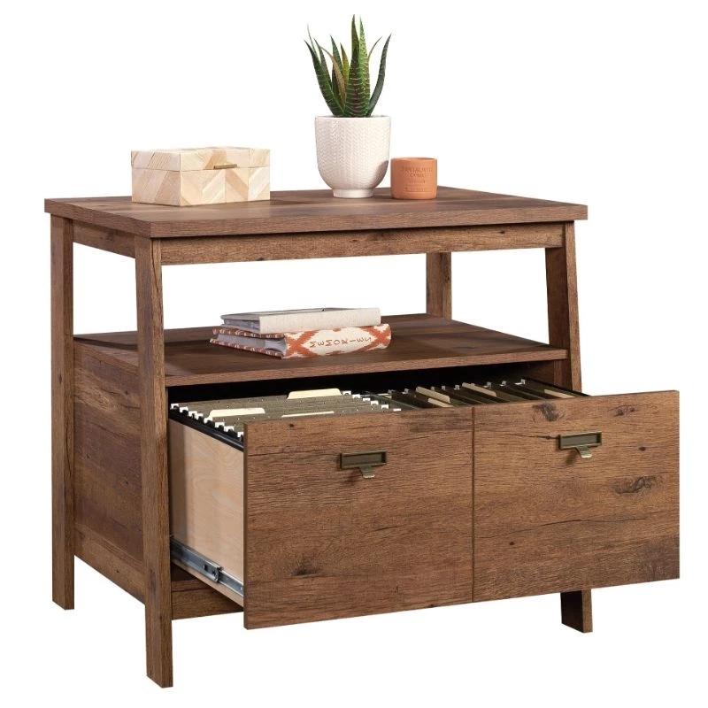 Urbanpro introduces a dramatic lateral file in a timeless finish—perfect for any room that needs more storage space. This lateral filing cabinet features a drawer with full extension slides that holds letter or legal-size hanging files. This 1 drawer file cabinet features a convenient open shelf for additional storage space for your important books, home décor, photos of your family, and more. The top surface is spacious enough for your to-do list, important documents, and a lamp—whatever needs to be close at hand. Finished on all sides for versatile placement, this open shelf filing cabinet is polished from every angle, allowing you to display it however you need. With a T-lock drawer system assembly is quick and easy—more time for organizing! Finished in a classic Vintage Oak®, this file cabinet is the trendiest addition to your home.
