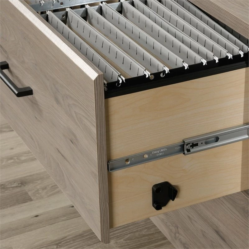 Keep your most important documents organized and easy to find with this lateral file from UrbanPro. This 2 drawer lateral file cabinet features strong and lightweight panel construction, meaning it is durable to hold your files while light enough to be easily rearranged to any room of your home. The drawers of this wood lateral file cabinet include full extension slides that hold letter, legal, or European size hanging files. For your safety, this legal size file cabinet features a patented, interlocking safety mechanism that allows only one drawer open at a time. Let’s not forget about the details—this 2 drawer filing cabinet includes elegant tapered feet and chamfered edges for that added stylish touch. This file cabinet is quick and easy to assemble with patented slide-on moldings so the piles of papers in your home office will have be organized in no time. Finished in Laurel Oak, an organized office is not far out of reach with this lateral file cabinet.